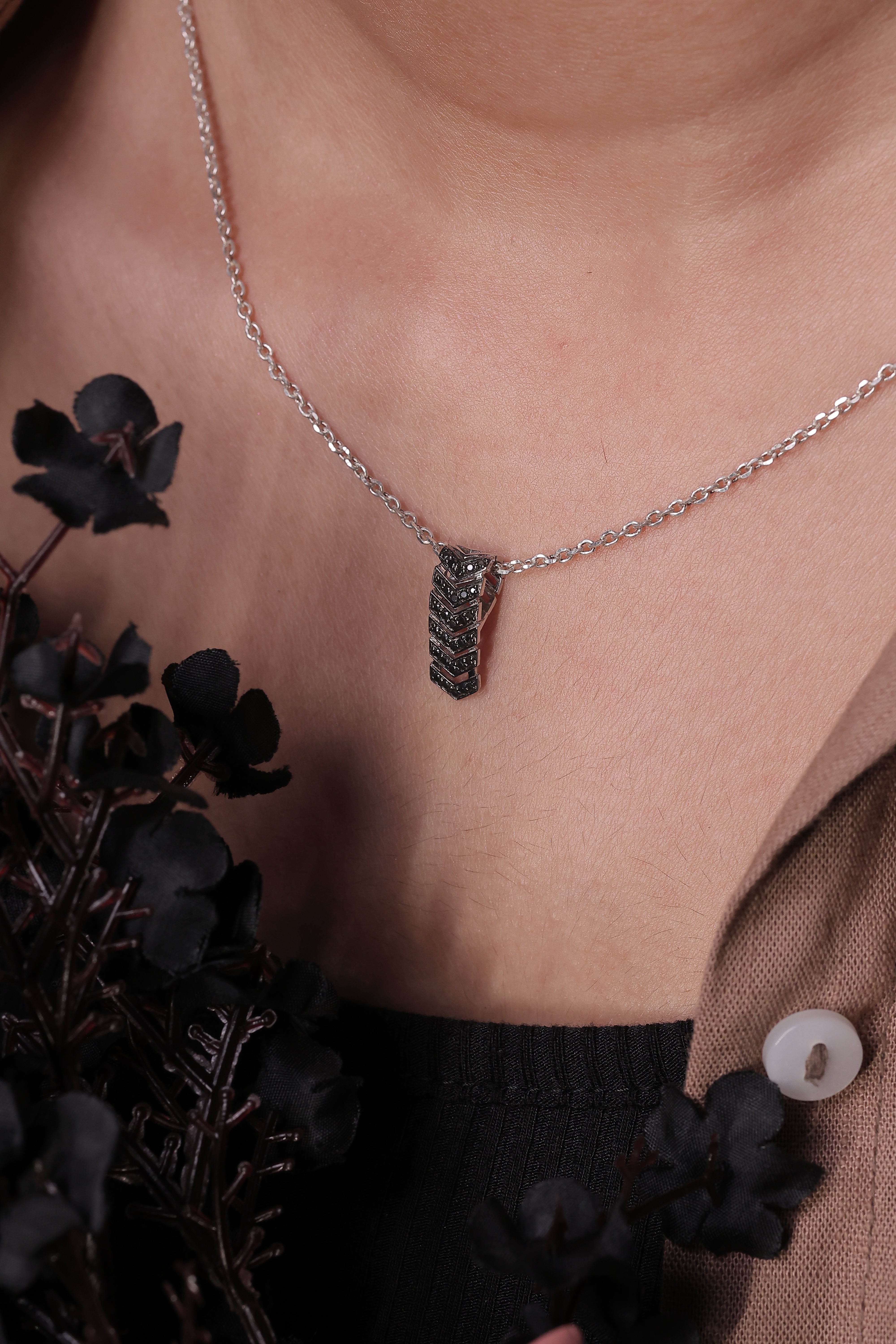 Bloom Cluster Black Pendant Necklace | Dainty Floral Silver