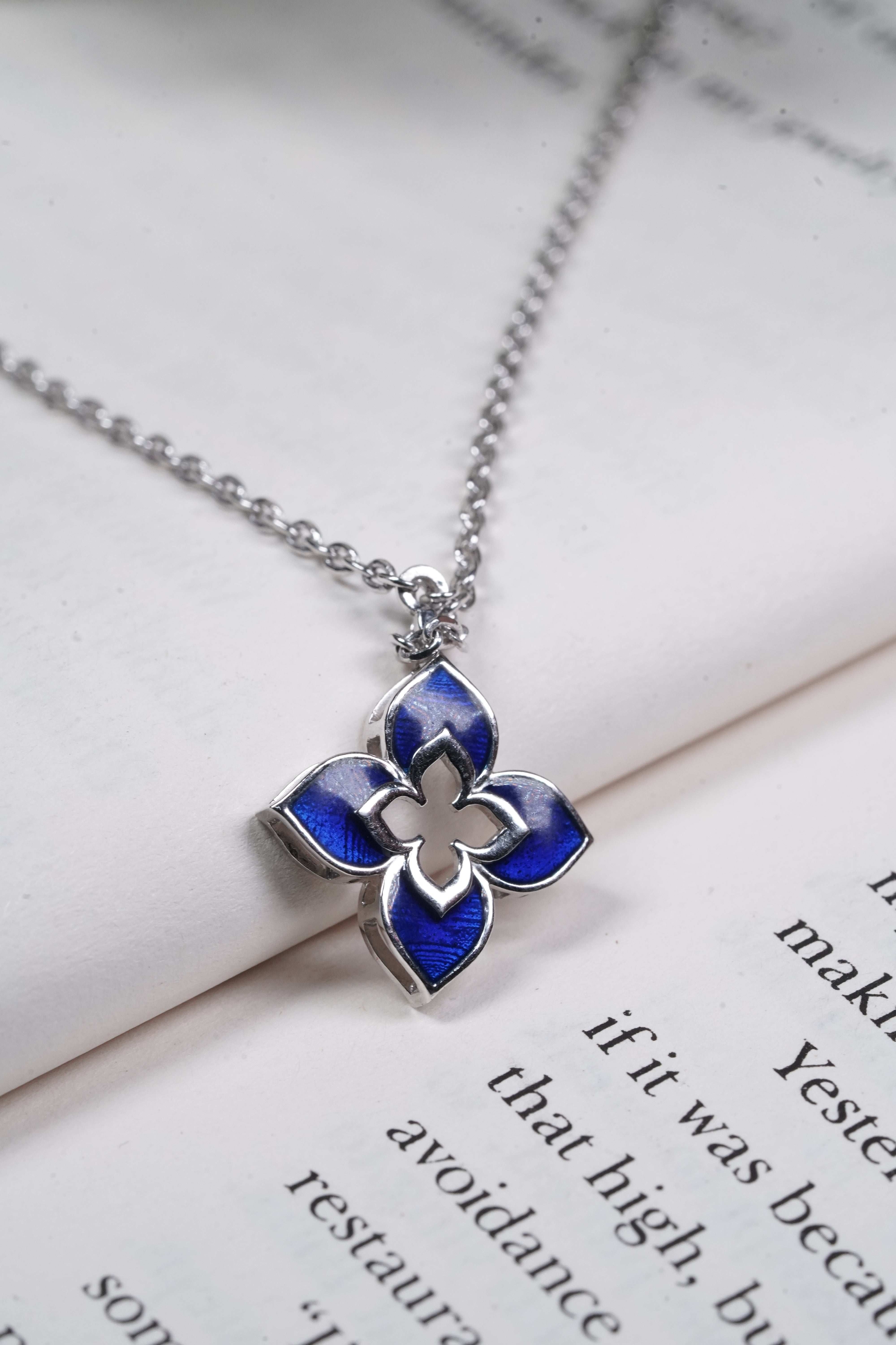 Blue Blaze Petal Silver Necklace | Blue Enamel Pendant