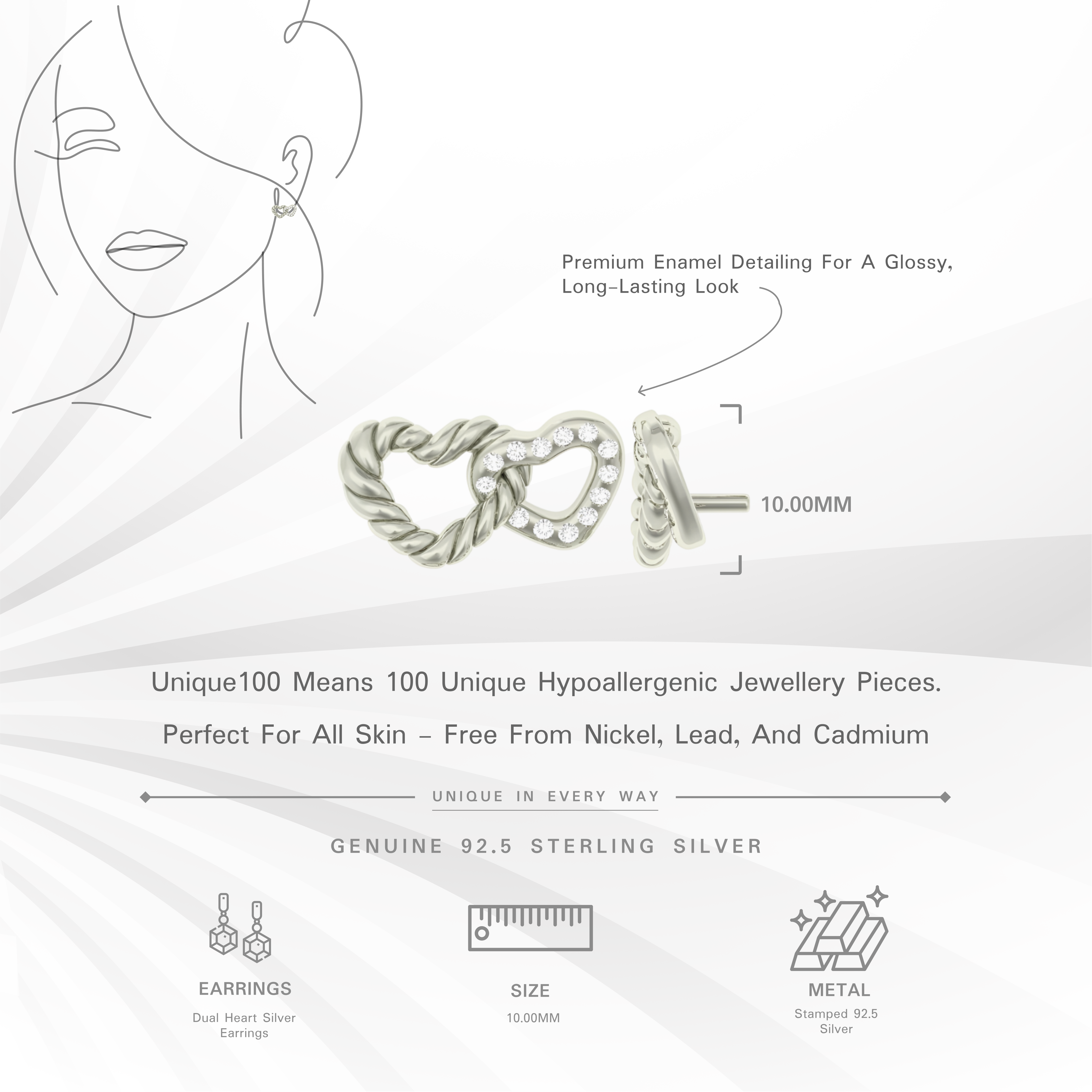 Dual Heart Silver Earrings | Trendy Love Jewelry