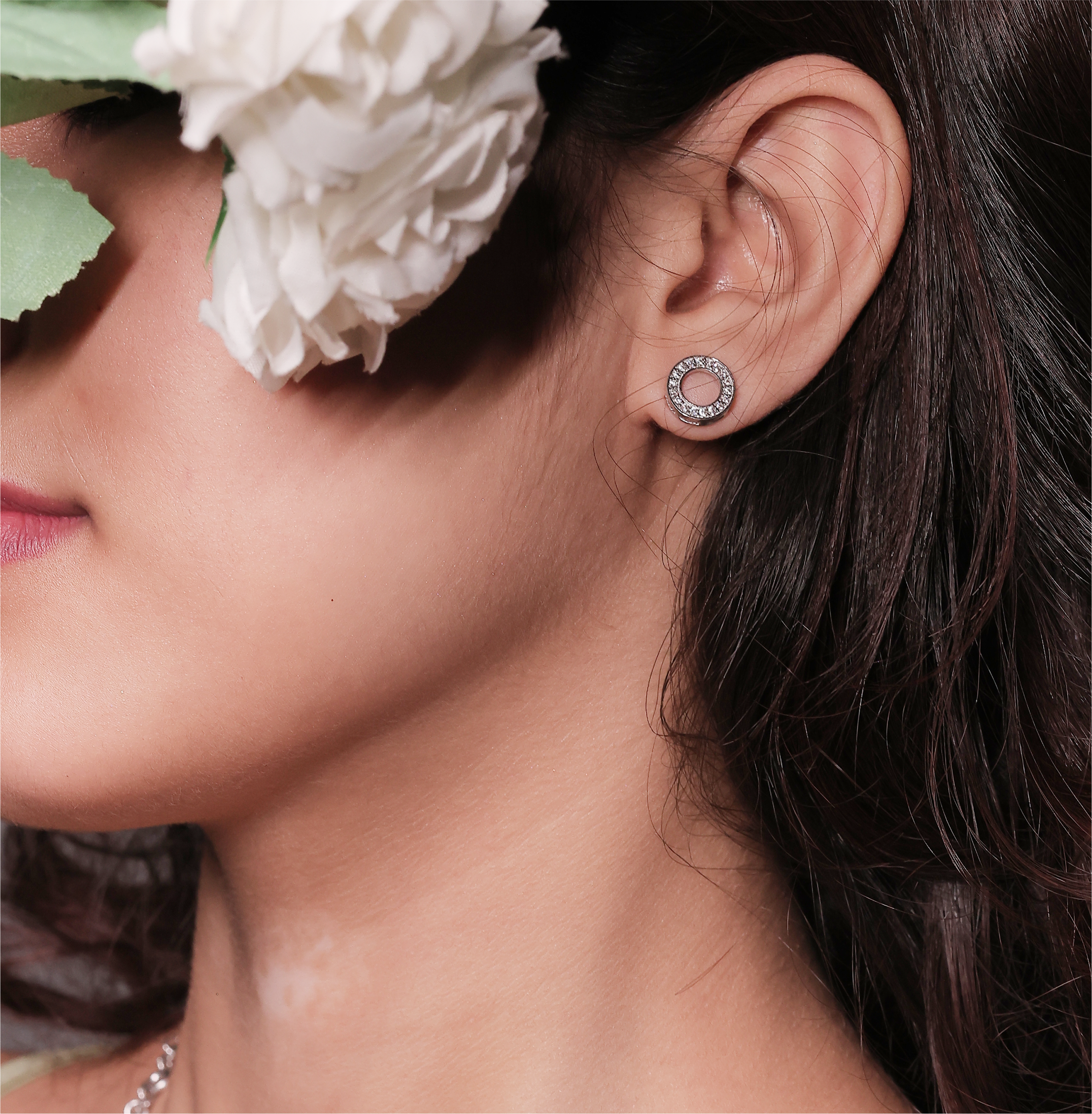 Glimmer Curve Earrings | Silver Swirl With CZ