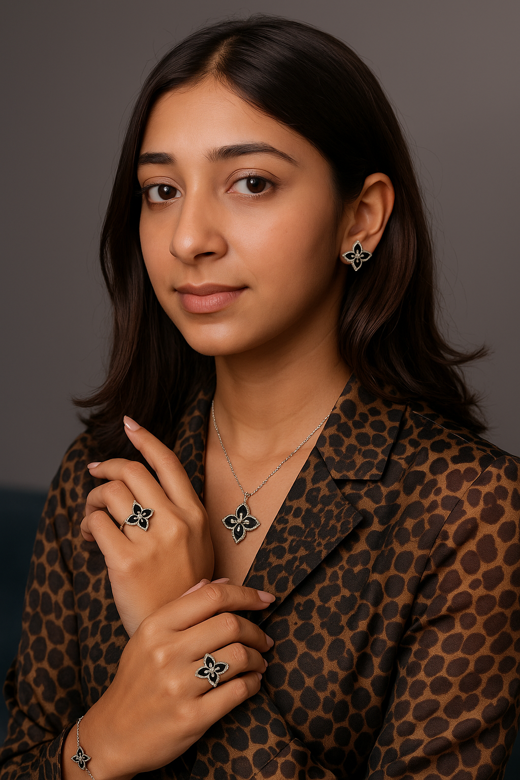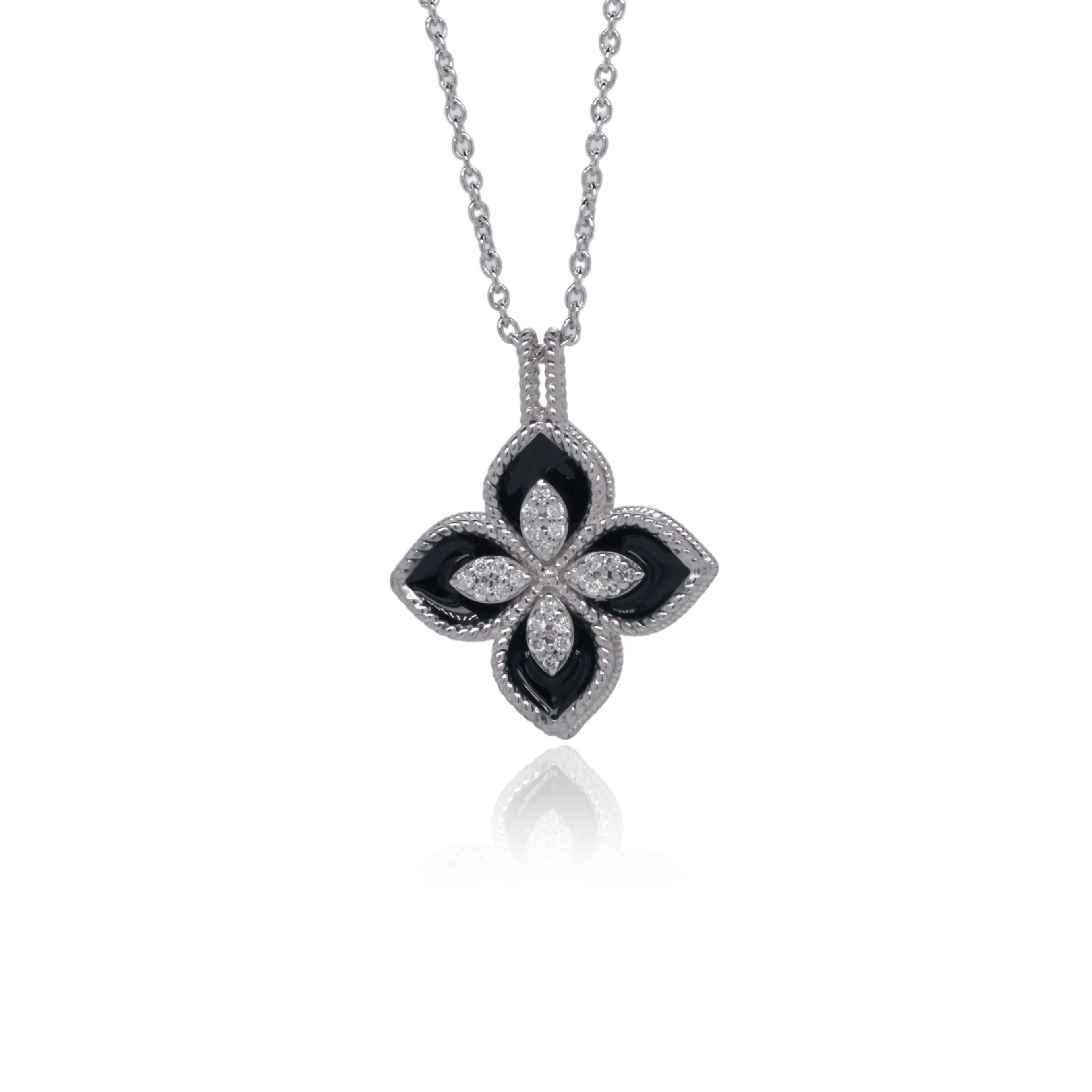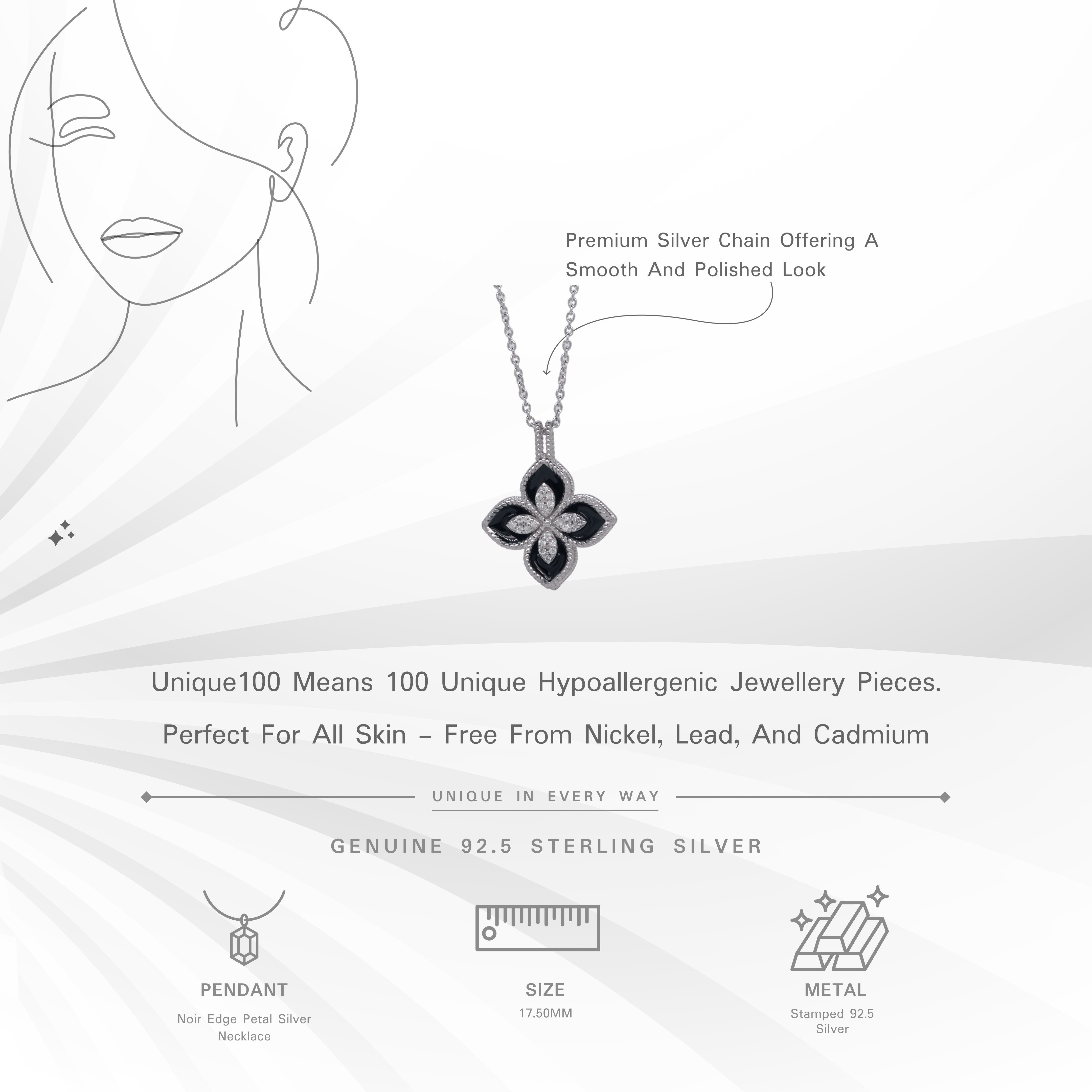 Noir Edge Petal Silver Necklace | Black Enamel Florals