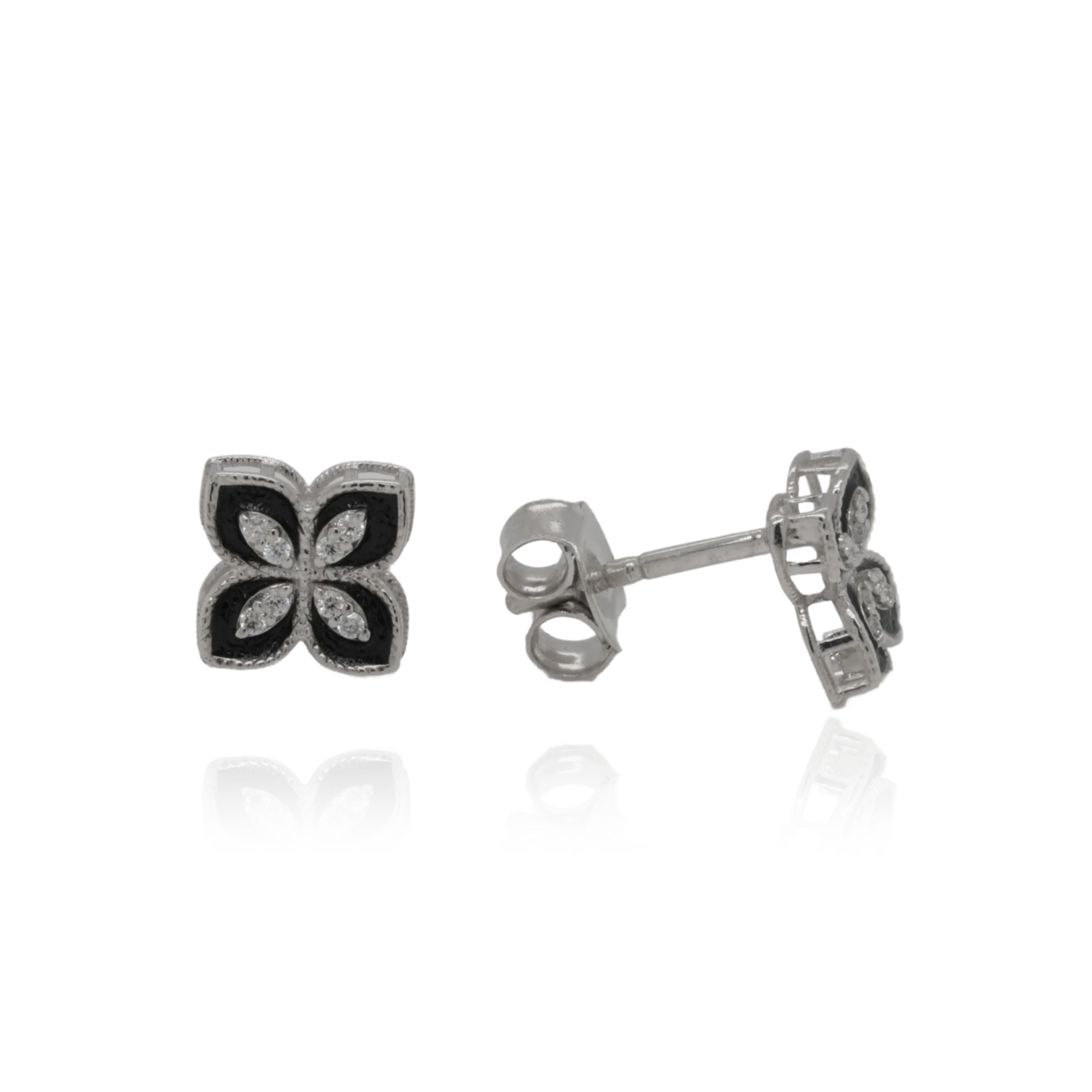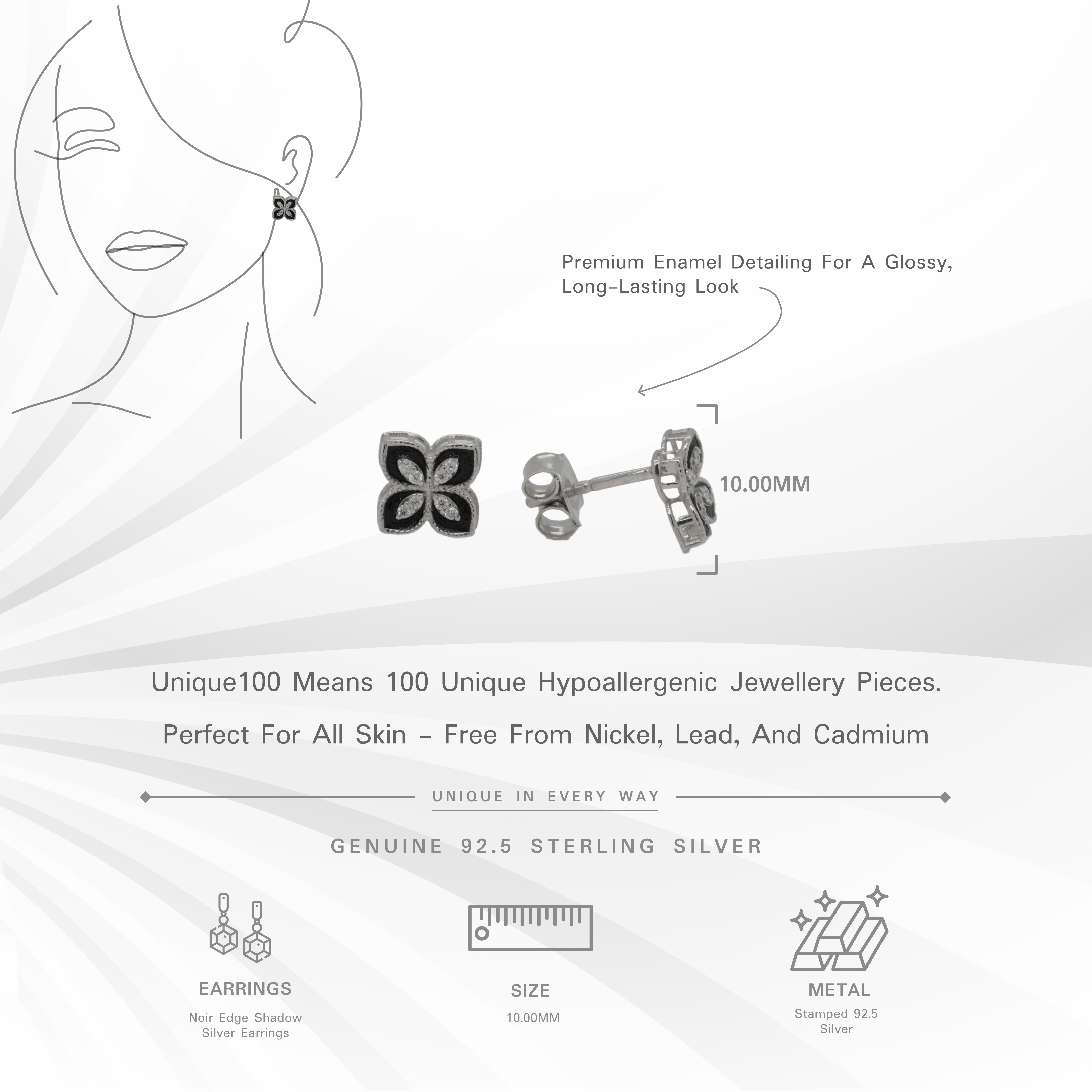 Noir Edge Shadow Silver Earrings | Modern Dark Florals