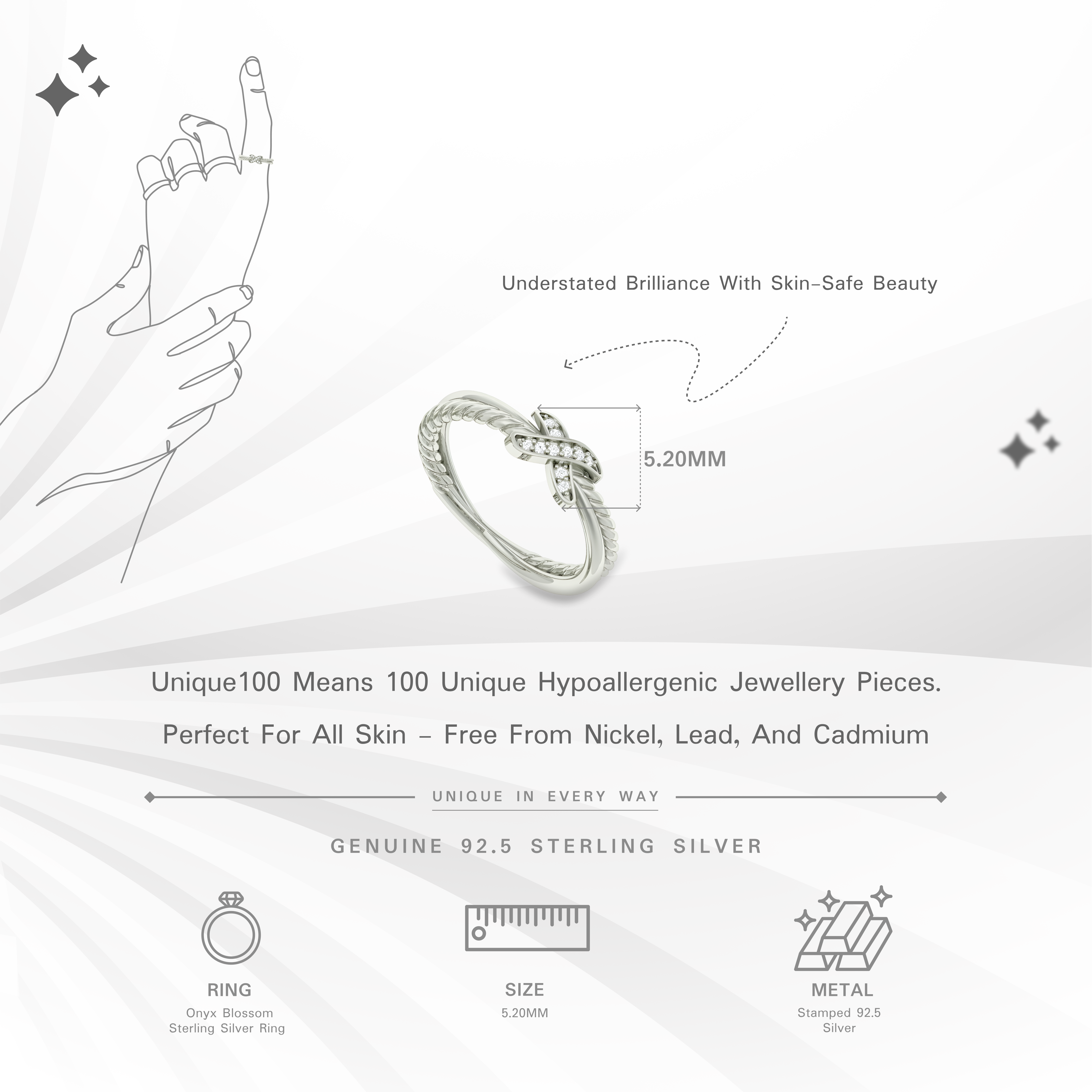 Onyx Blossom Sterling Silver Ring | Bold Floral Design