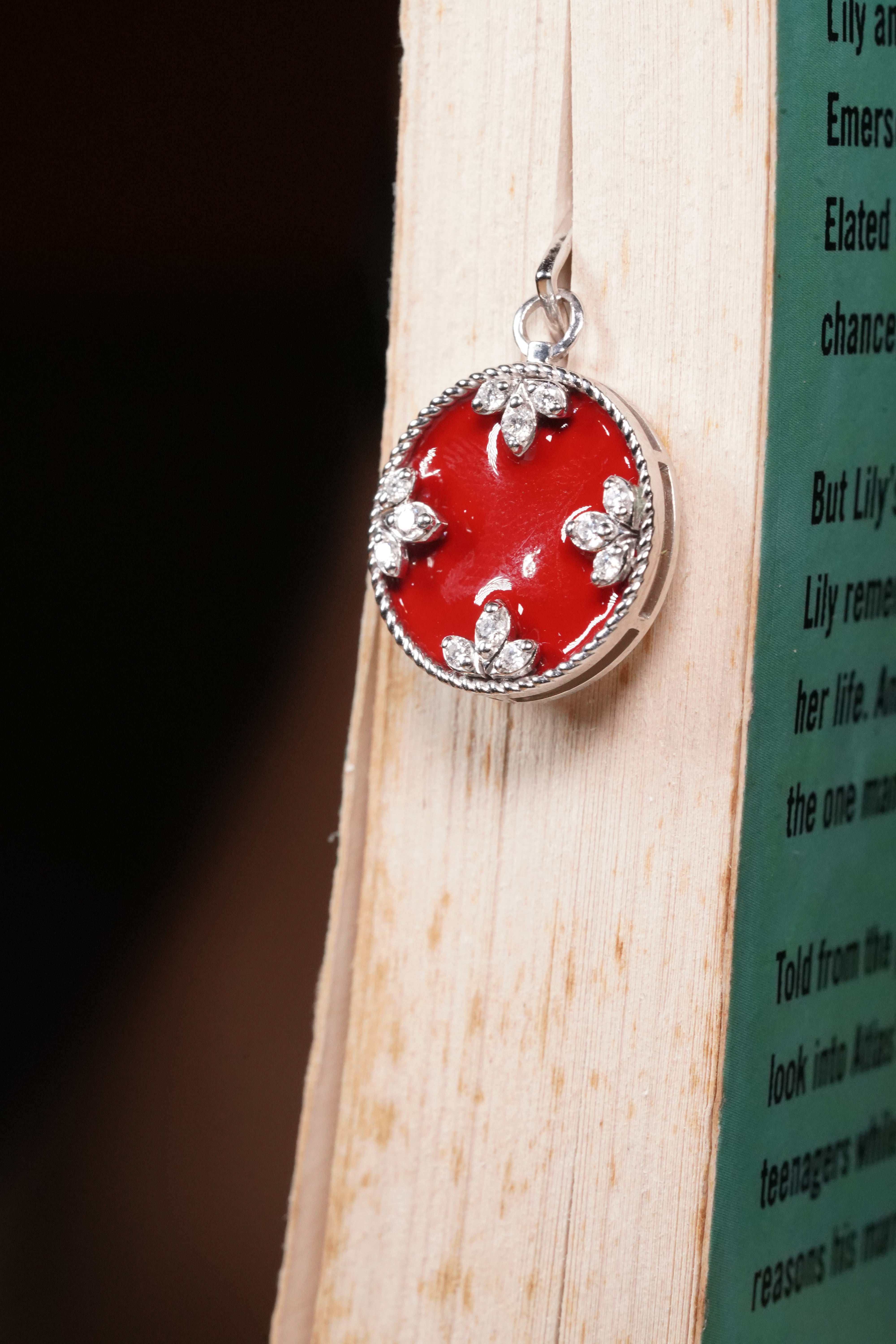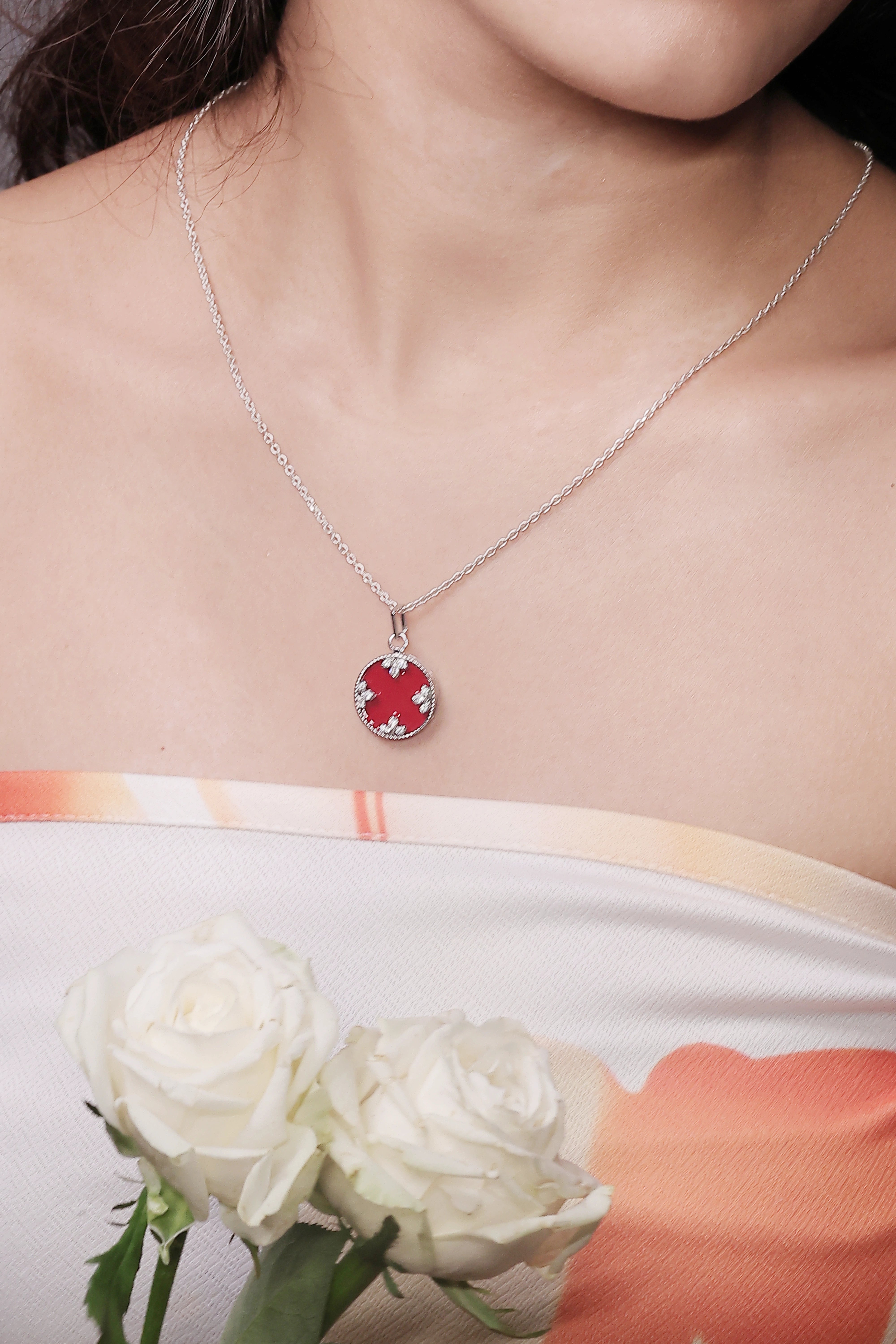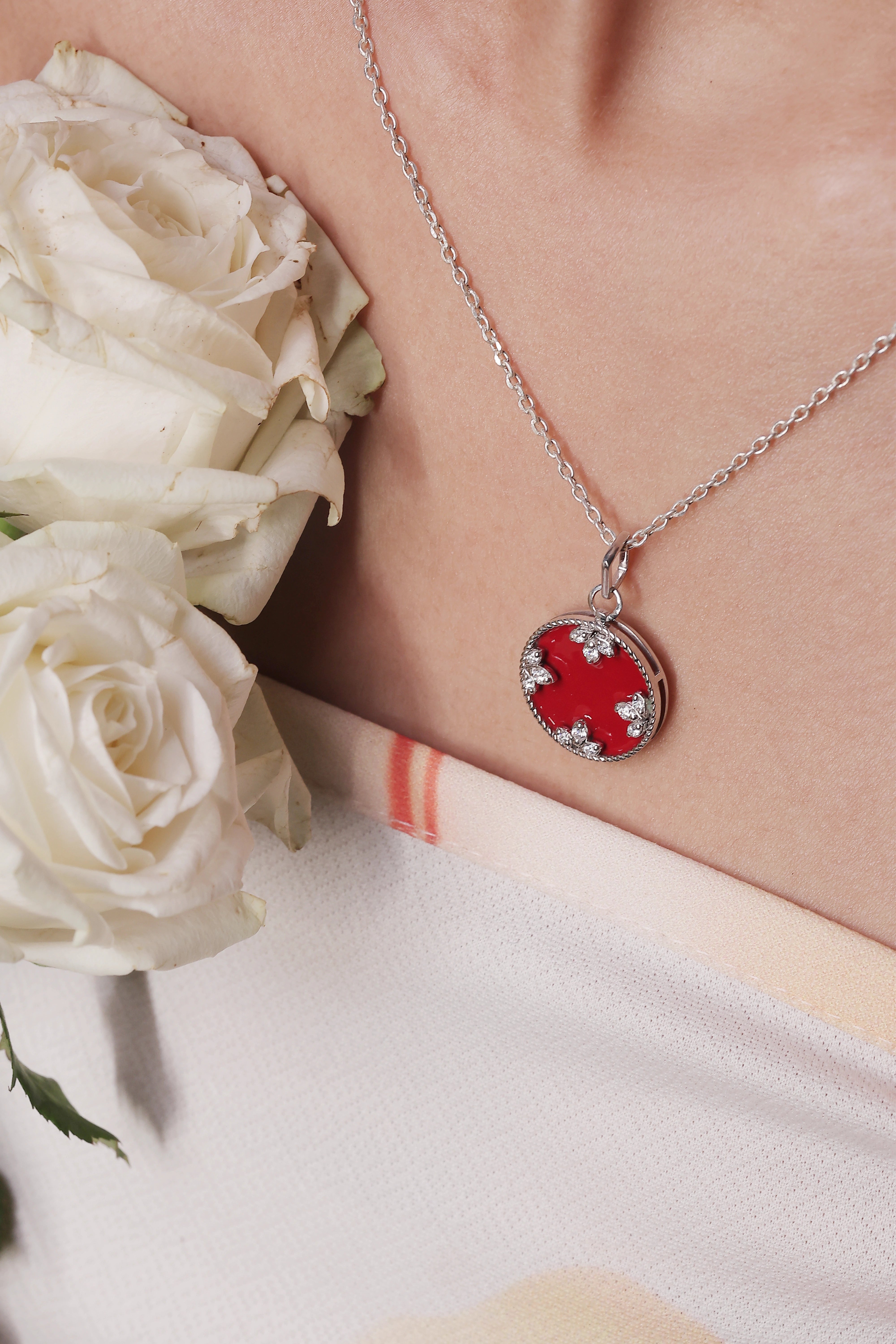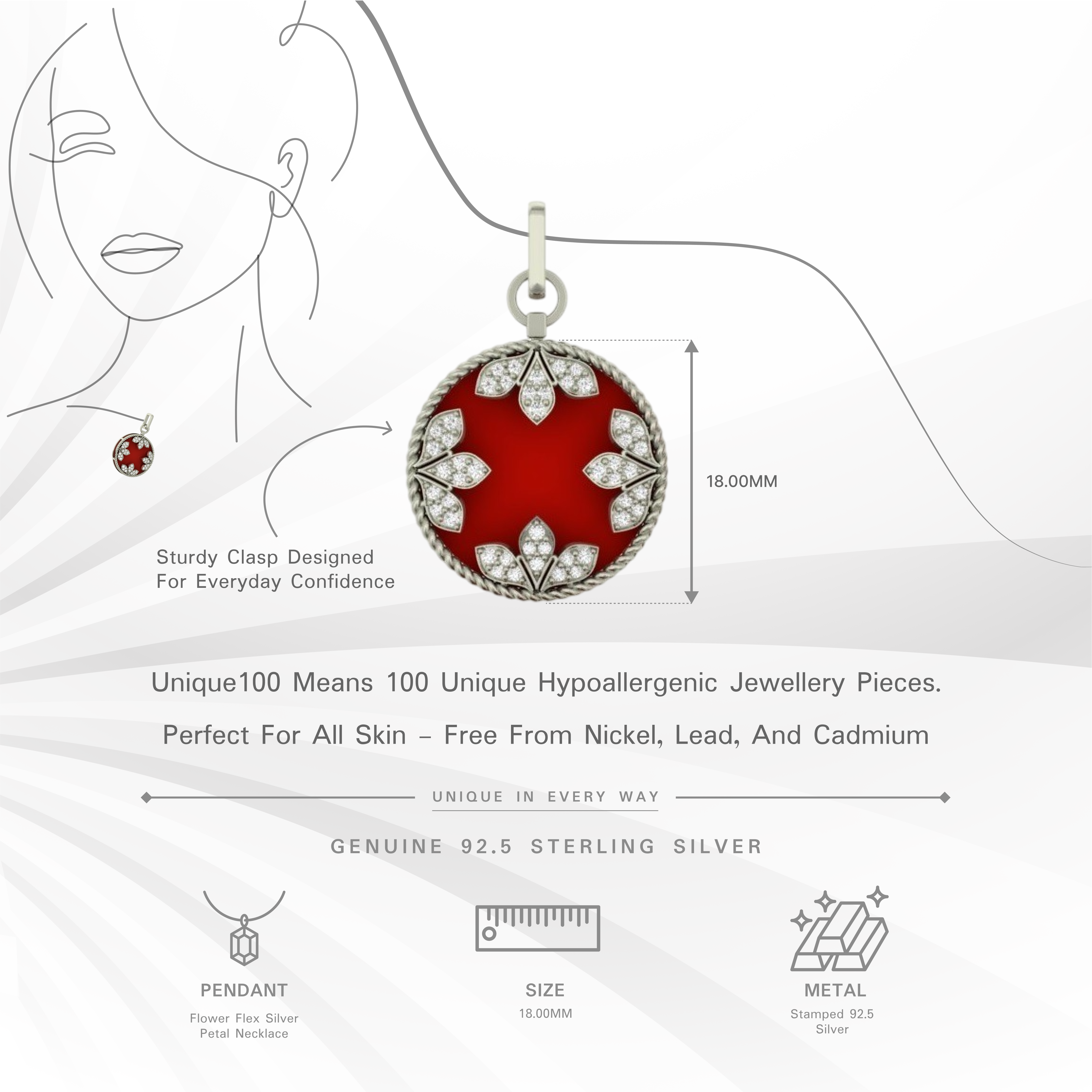 Red Bloom Silver Necklace | Red Stone Floral Pendant