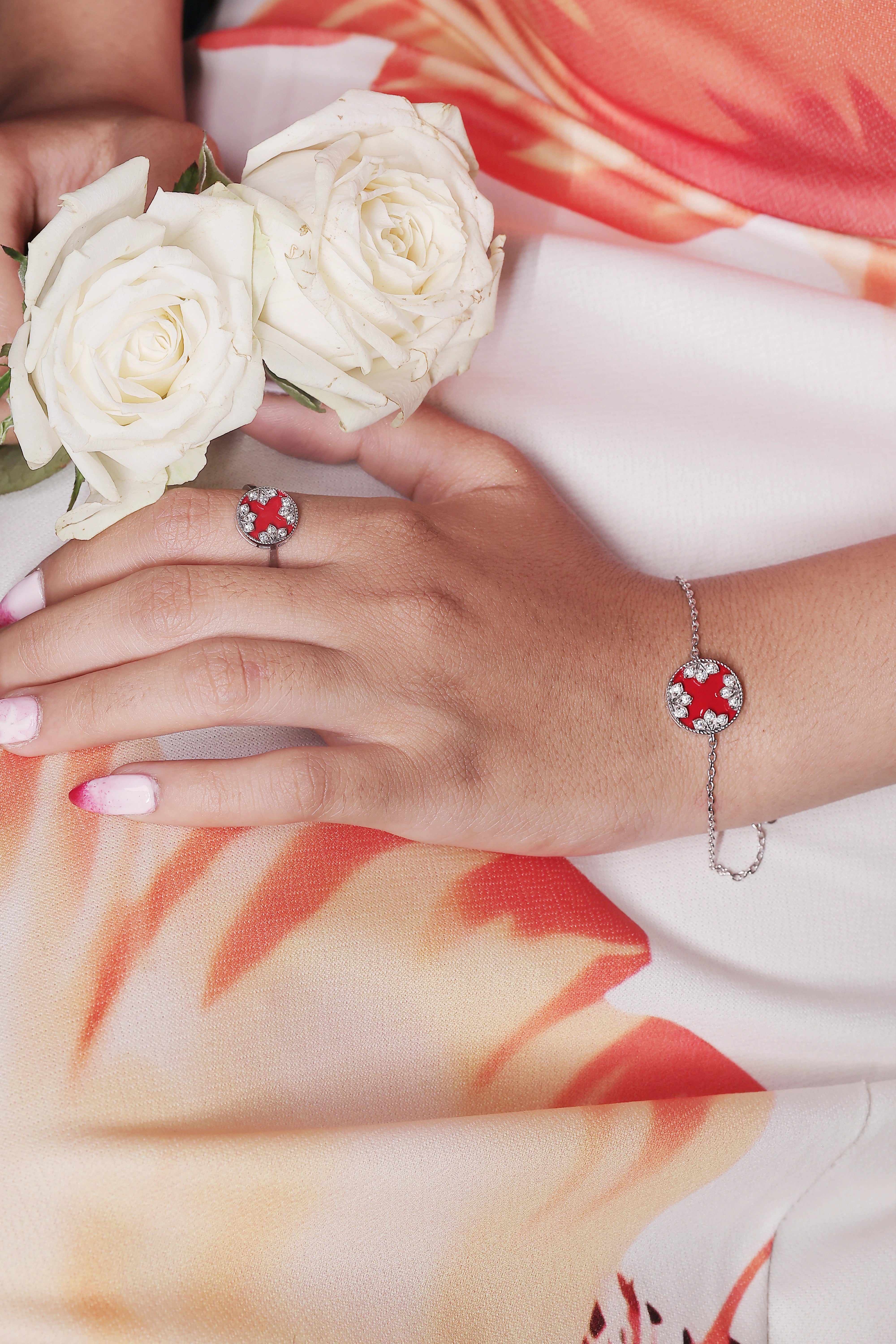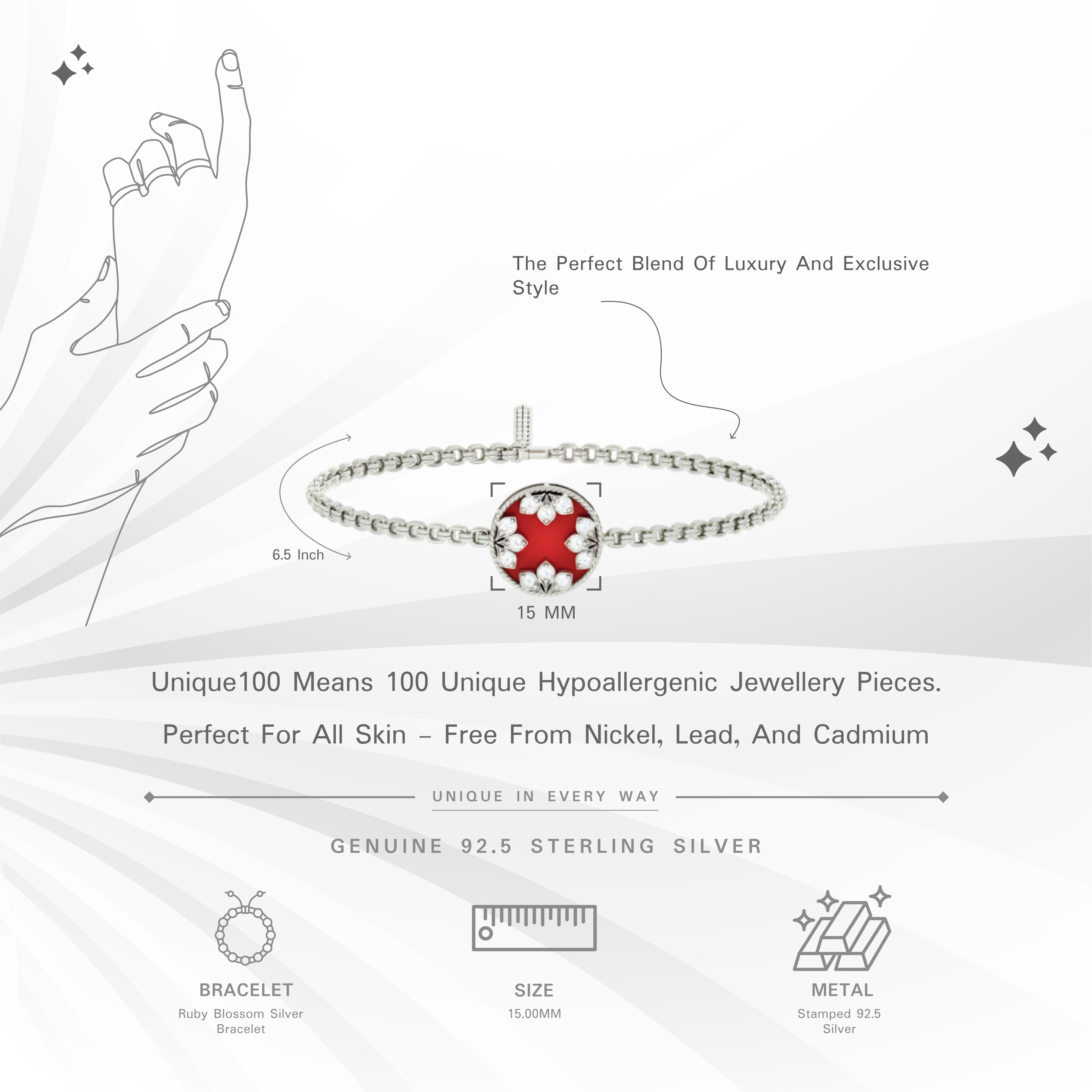 Ruby Blossom Red Silver Bracelet | Elegant Red Stone Jewelry