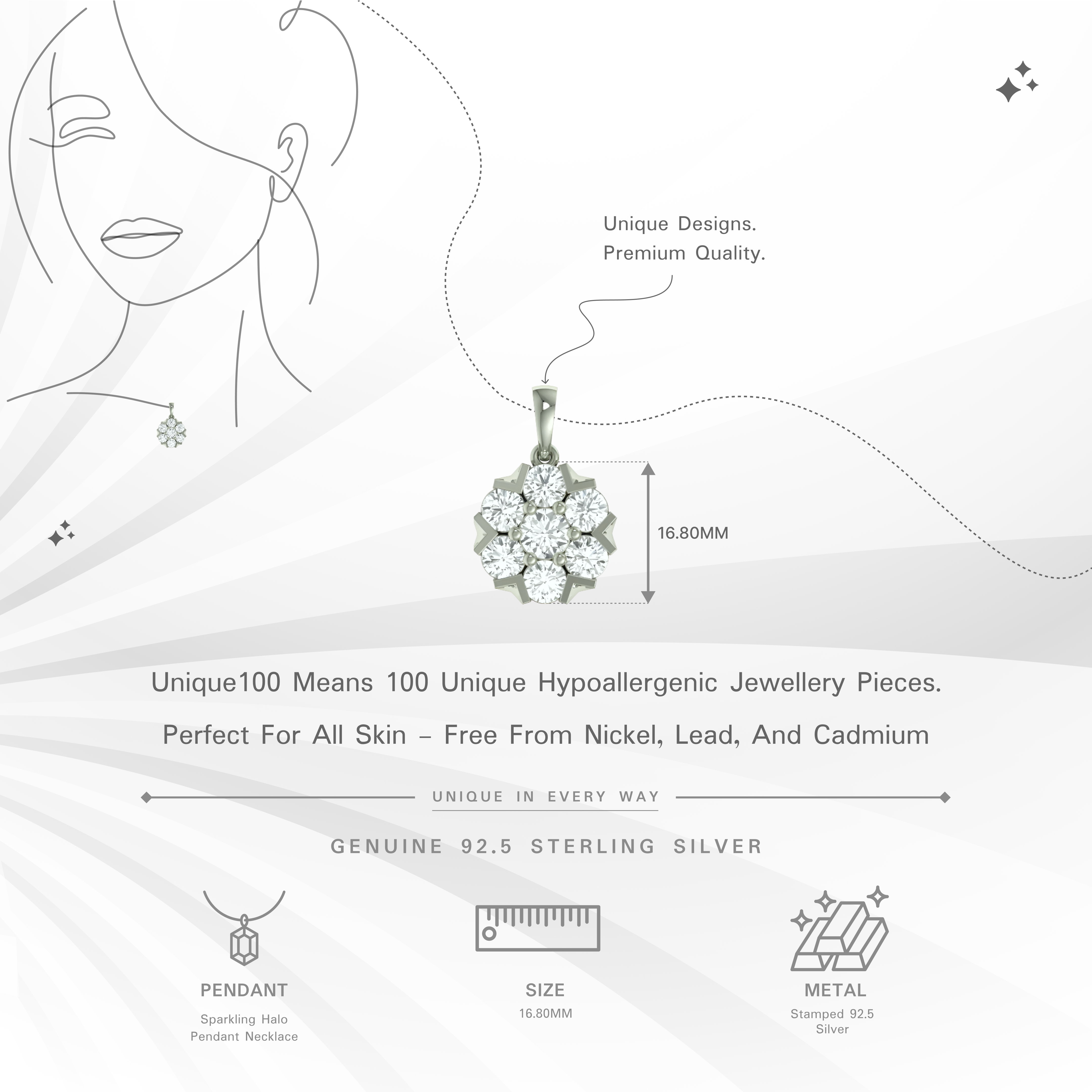 Sparkling Halo Pendant Necklace | 925 Silver & Cubic Zirconia
